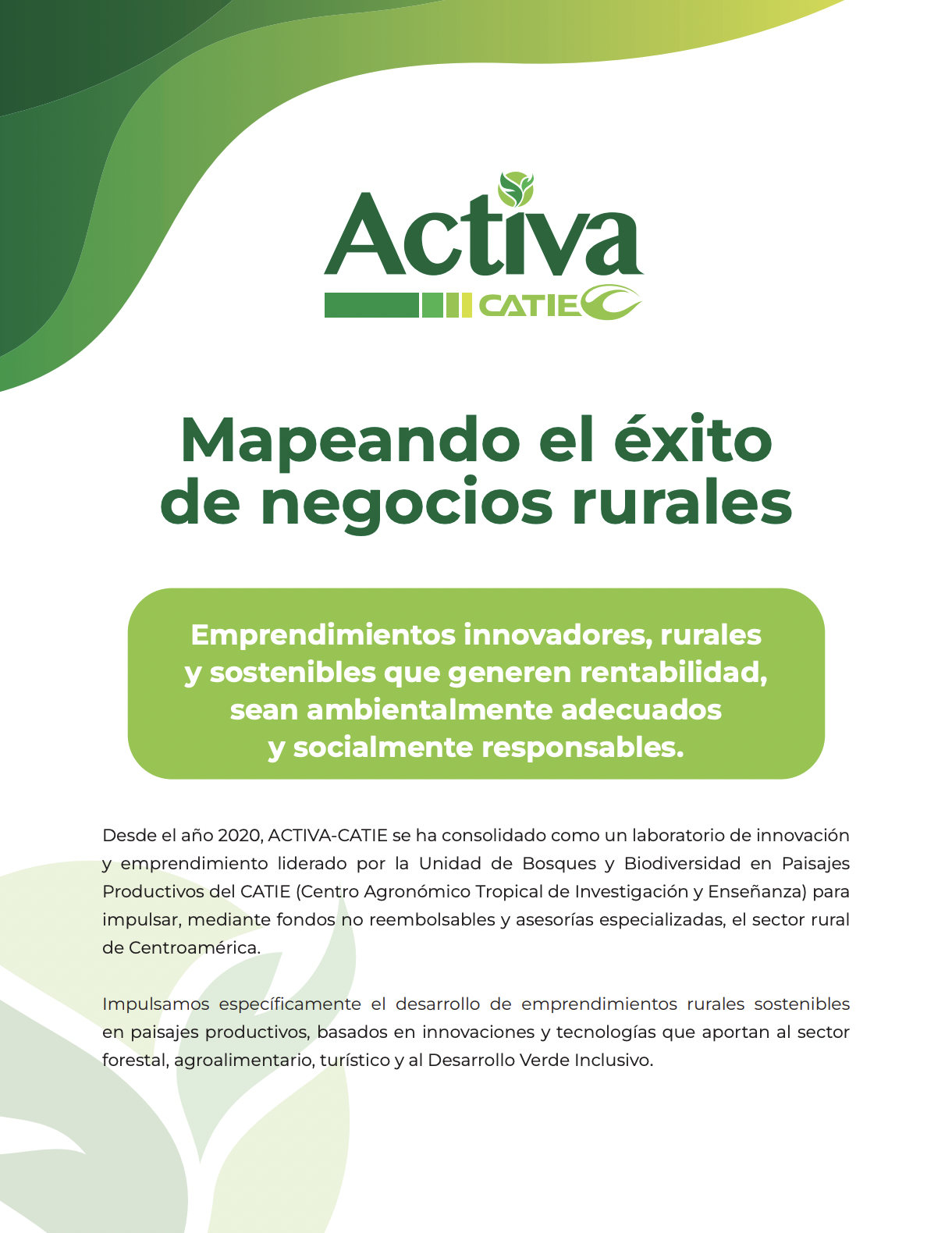 Emprendimientos innovadores, rurales y sostenibles que generen rentabilidad, sean ambientalmente adecuados y socialmente responsables.